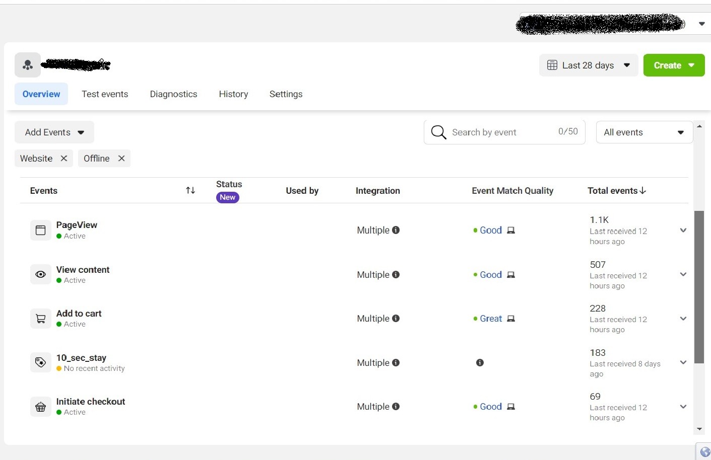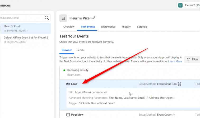 Before Facebook Conversion API Setup (Received Data Only from Browser Side)