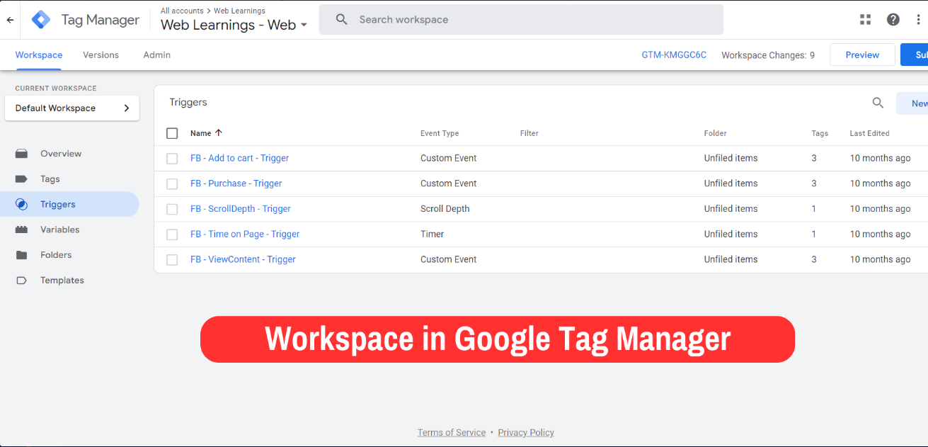 Workspace in Google Tag Manager